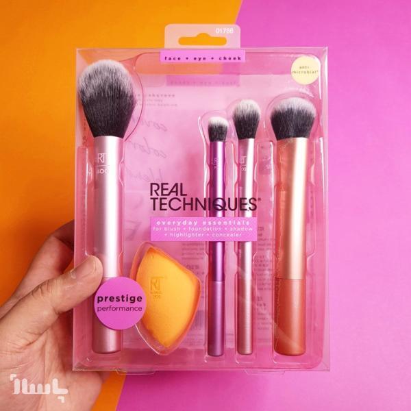 ست براش ریل تکنیک با اسفنج اصل Real techiques بسته 5 عددی Real Techniques Everyday Essentials Set