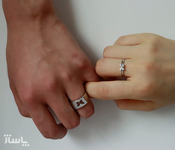 ست انگشتر مکمل ( کاپل ) طرح پروانه استیل رنگ ثابت