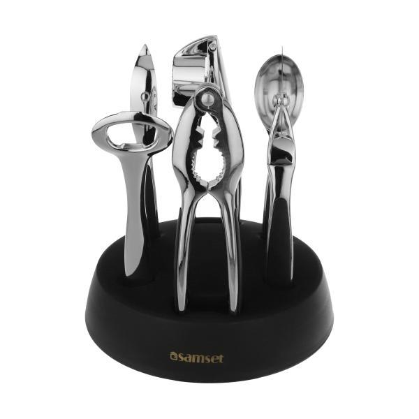 این ست شامل : اسکوپ بستنی ، پوست کن ، در بازکن ، گردو شکن ،پیتزا بر و سیر له کن میباشد.