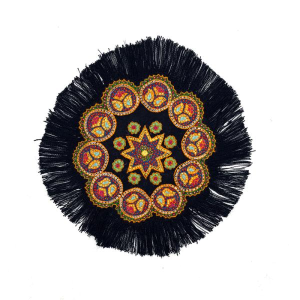 رومیزی پته دوزی طرح قهر و آشتی رنگ سورمه ای 25 سانتی