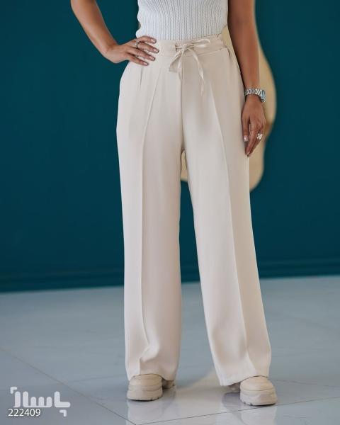 شلوار بگ پارچه ای زیپ و دکمه ای پشت کش بند دار