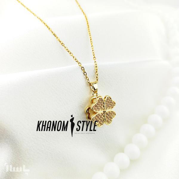 گردنبند استیل طلایی طرح گل چهار برگ( اسپینر یا چرخشی)