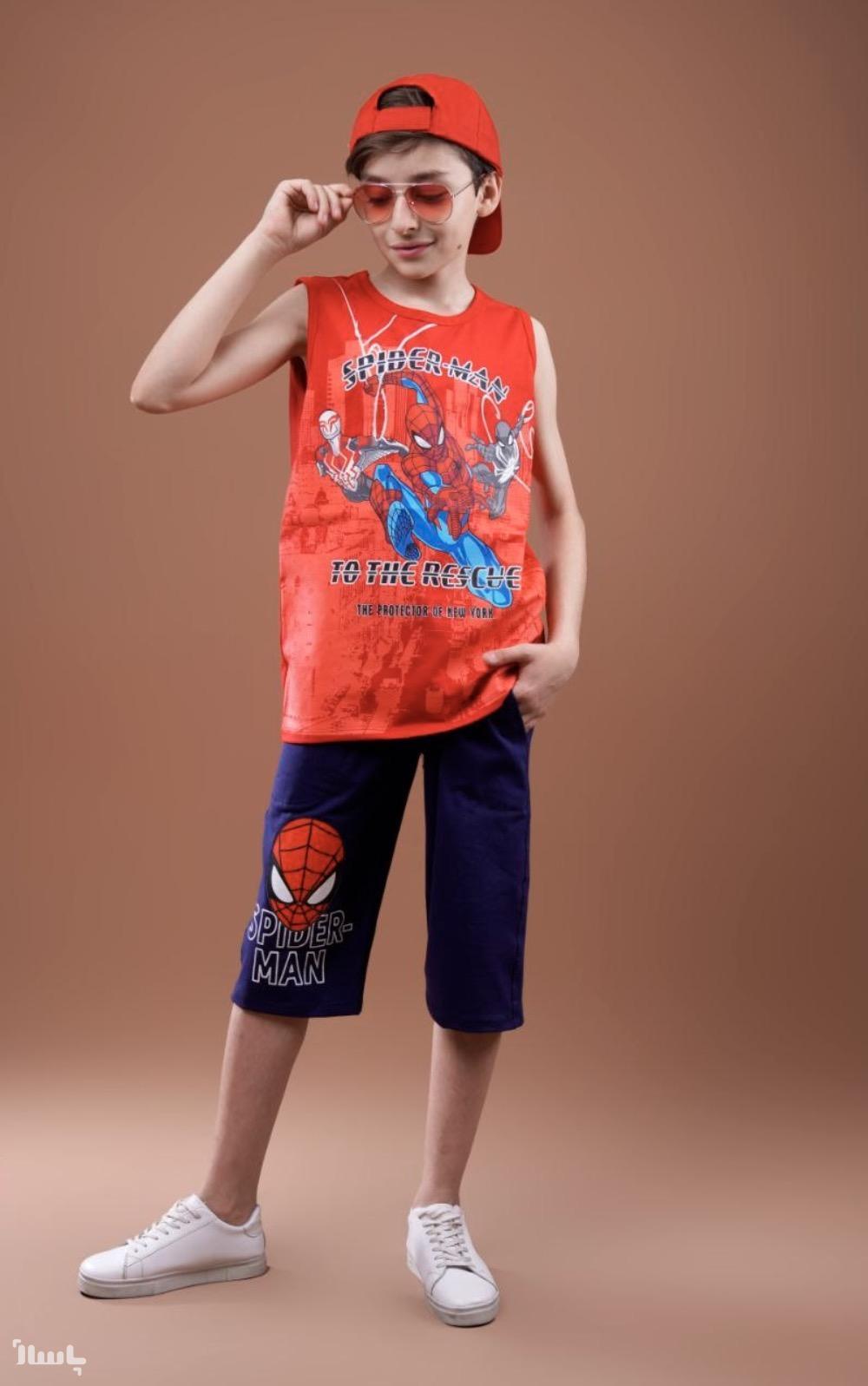 تاپ و شلوارک اسپایدرمن ست لباس مردعنکبوتی تیشرت شلوارک پسرانه