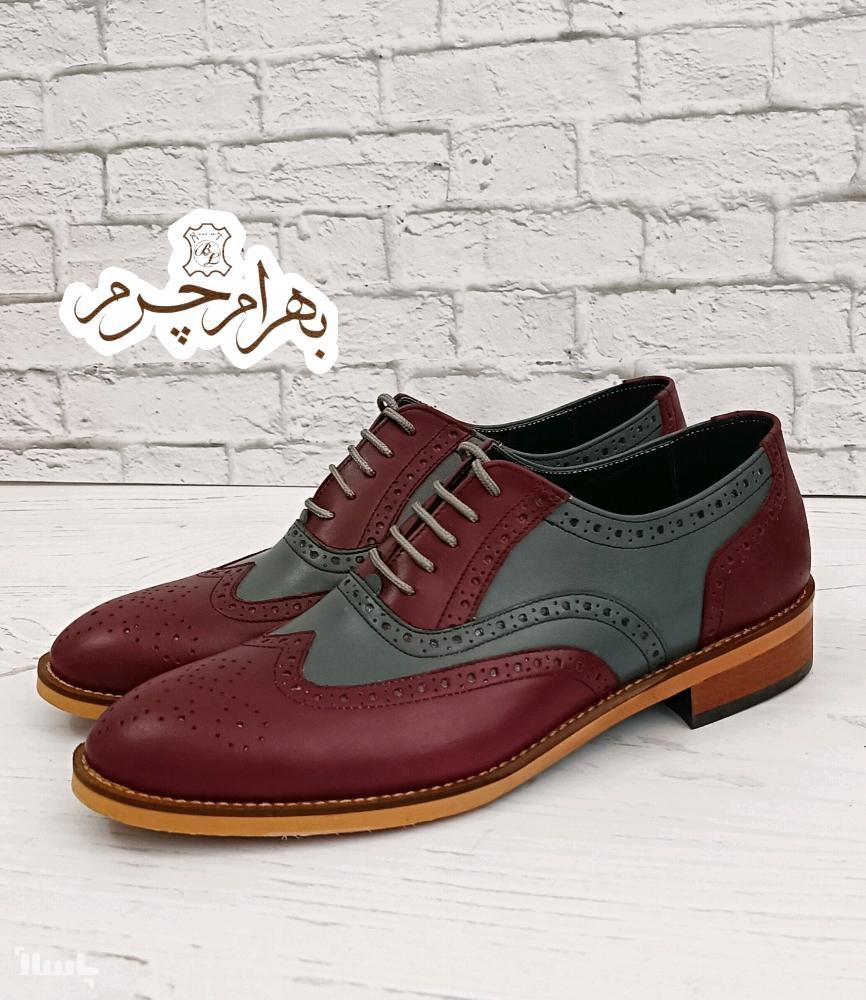 کفش مردانه مجلسی چرم طبیعی دستدوز مدل نیلسون زرشکی طوسی
