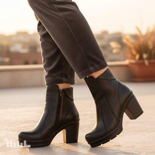 نیم بوت پاشنه و یقه دار ترند کلاسیک جدید فصل دخترانه چرم و شرانک 4576