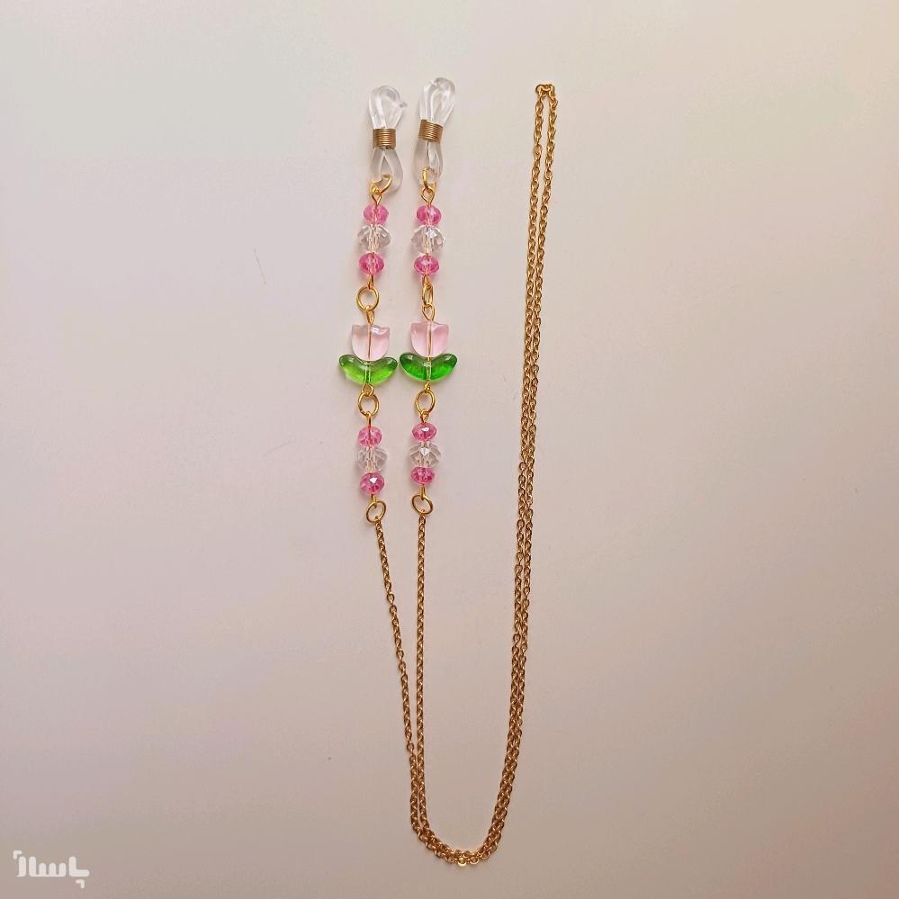 بند عینک زنانه فانتزی گل لاله صورتی