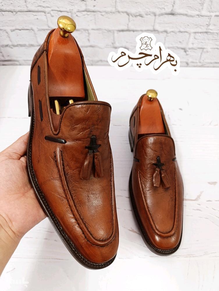 کفش زیره چرم مدل آلبرت تمام چرم طبیعی دست دوز هست