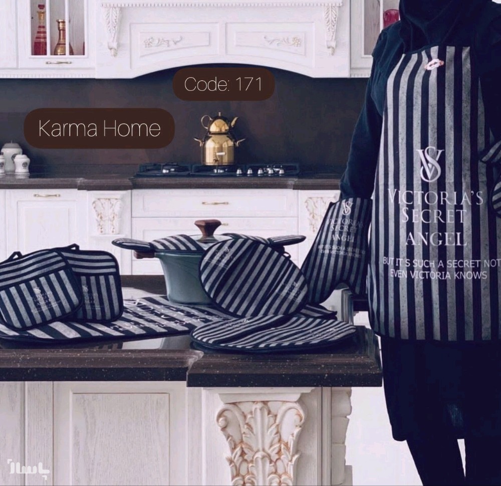 سرویس دمکنی و پیشبند 11 پارچه عروس آشپزخانه کارماهوم کد 171 (دم کنی)
