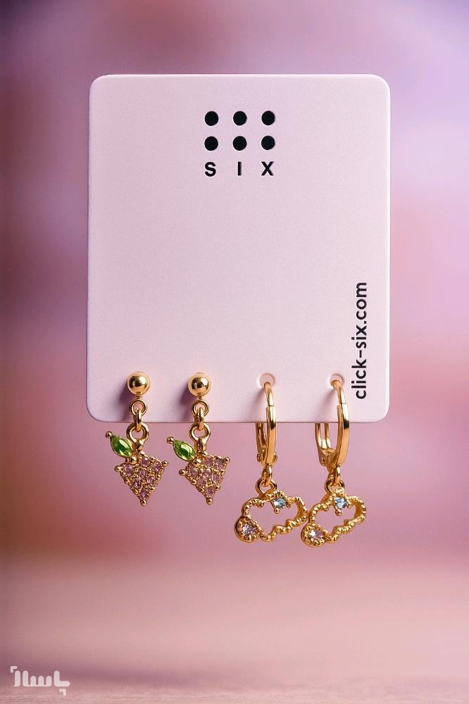 ️ گوشوارههای ابر طلایی با نگینهای آبی و سفید، مثل تیکهای از آسمون روی گوشت میدرخشن
