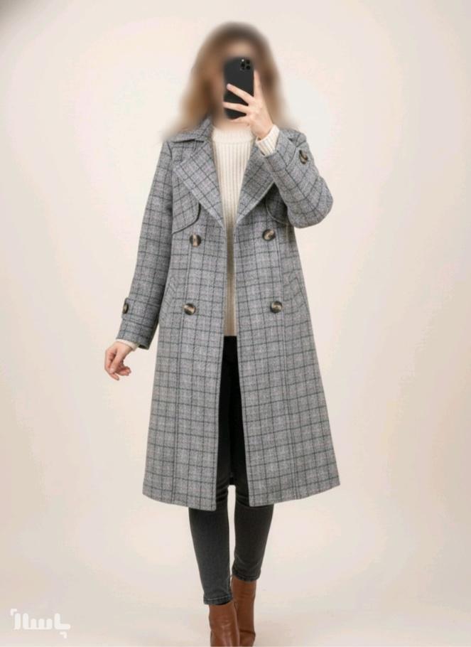 پالتو زنانه توییت آستردار بلند مدل چهارخونه ترک