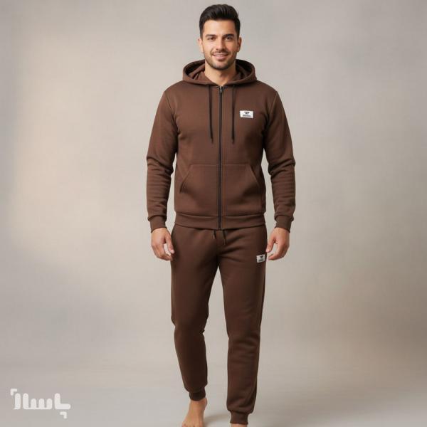 ست سویشرت و شلوار مردانه رنگ قهوه ای جنس اسپان – راحت، سبک و مناسب روزمره