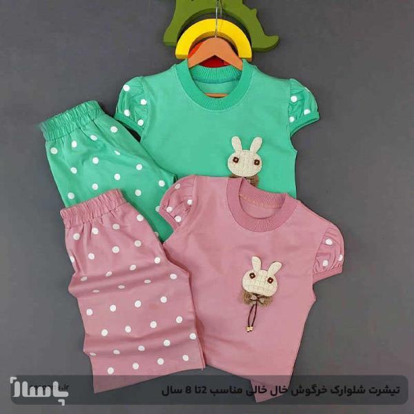 تیشرت شلوارک خرگوش خال خالی مناسب 2 تا 8 سال
