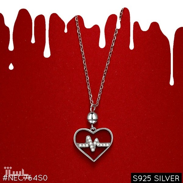 گردنبند نقره لوکس قلب قرمز و ضربان