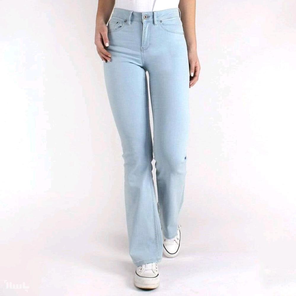 شلوار جین بوتکات یا دمپا گشاد رنگ آبی روشن یا یخی پارچه ترک با لطافت انعطاف و کشسانی بسیار بالا