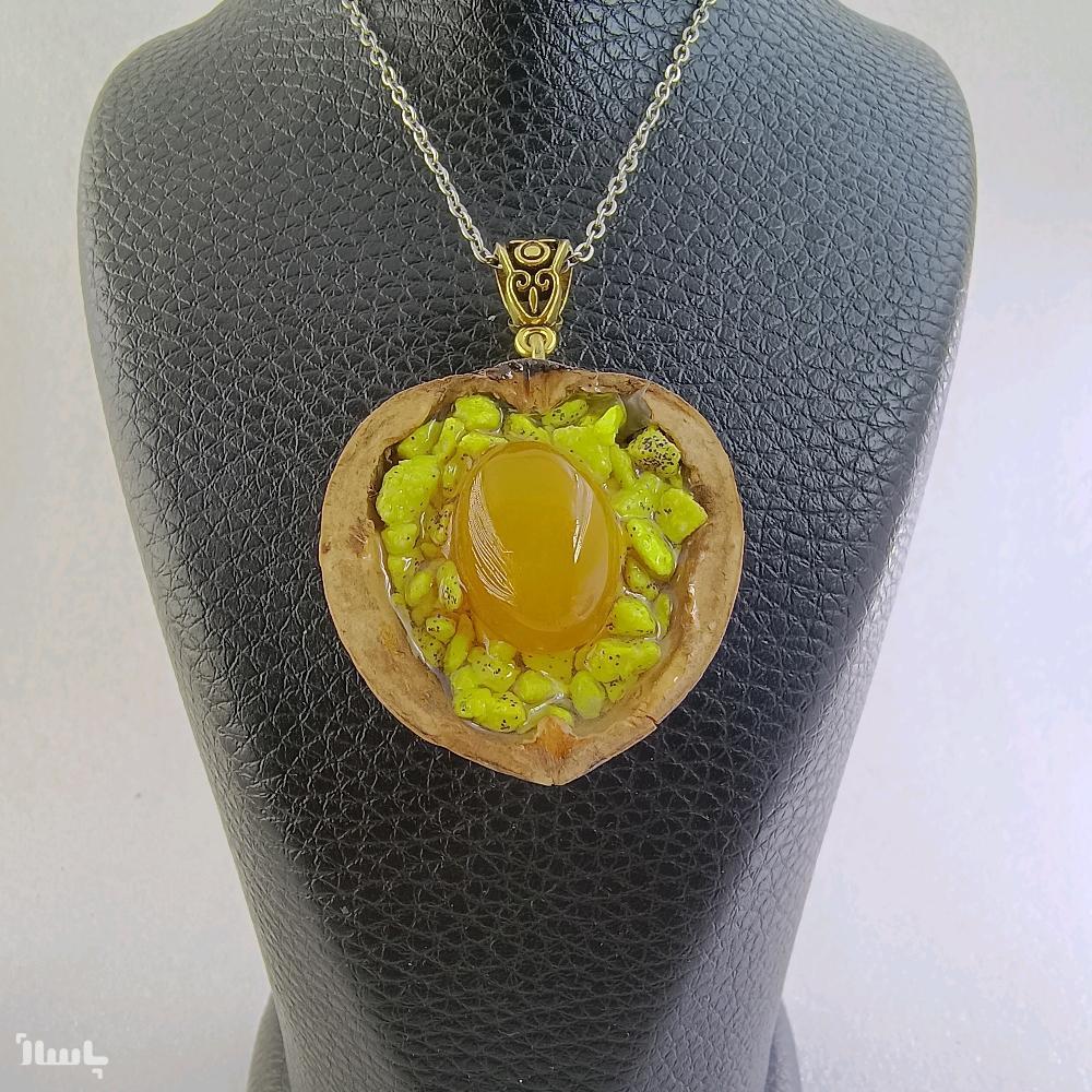 گردنبند عقیق زرد قاب گردو ر480