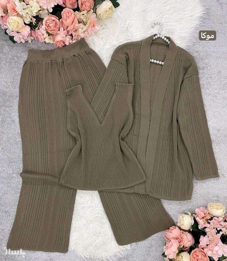ست بافت زنانه 3 تیکه(جکت+شلوار+تاپ)