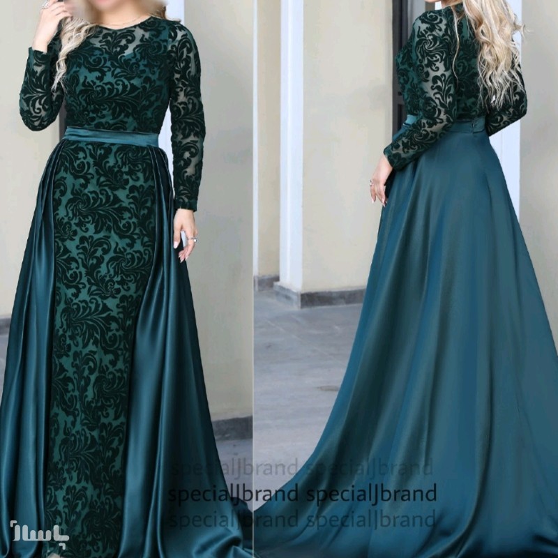 جنس : فلوک و ساتن(قد ماکسی155)(قد پشت دنباله135/قد جلو 115)(پشت زیپ داره)