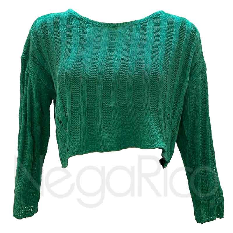 کراپ بافت زنانه جنس و کیفیت عالی با آستین های بلند و رنگ بندی بینظیر فری سایز تن خوری کراپ بسیار شیک در دورنگ سفید وسبز