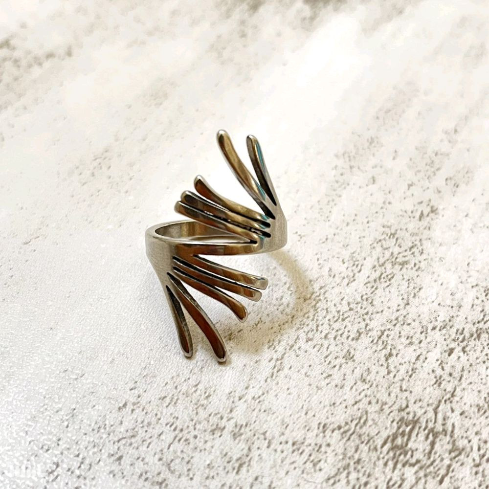 این انگشتر زنانه طرح جالبی دارد و جنس آن استیل است. این کار اسپرت مناسب تیپ های هر استایل که دارای رنگ نقره ای که بدون تغییر رنگ می باشد.