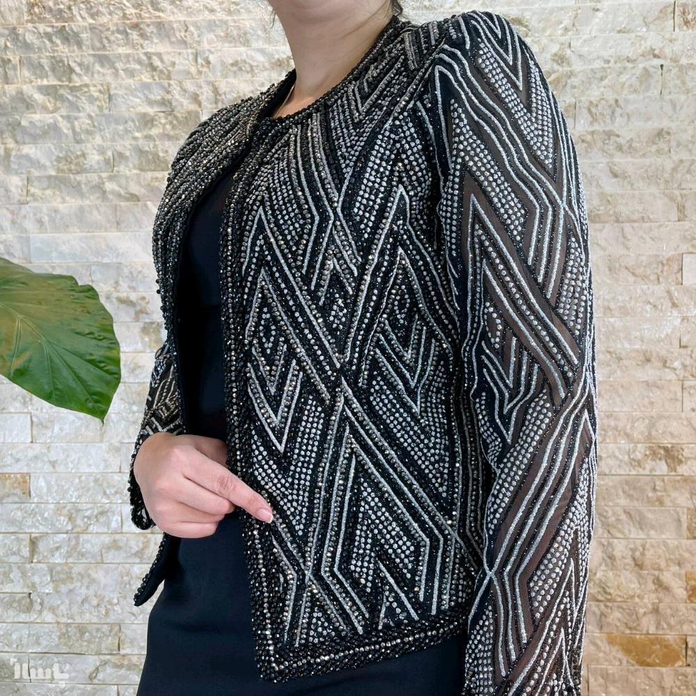 کت سارافون مجلسی طرح یاقوت که جنس سارافون آن از کرپ با کیفیت میباشد و آستین حلقه ای است و کت تماما جواهر دوزی میباشد وترکیب مروارید در کنار اکلیل به جلوه کار افزوده وکاری فوق العاده شیک وجذاب برای درخشش شما در مجالس میباشد