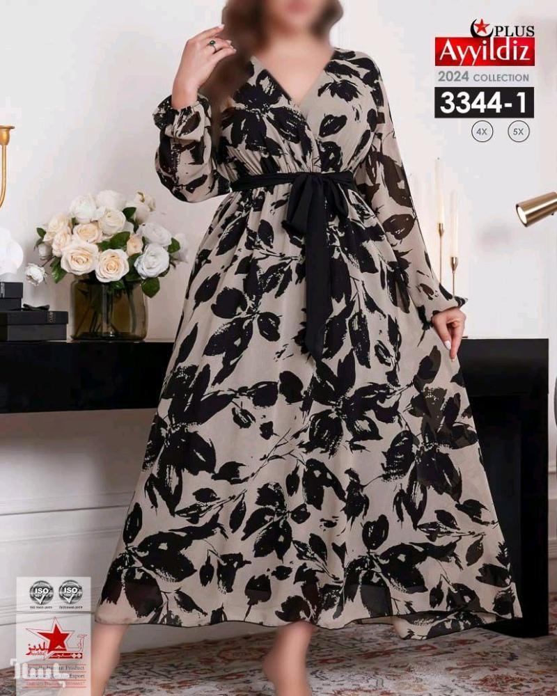پیراهن مجلسی بیگ سایز کرپ حریر فرانسه3344