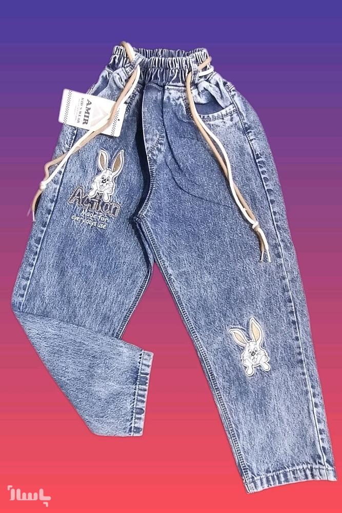 شلوار لی مام برفکی تکه دوزی خرگوش