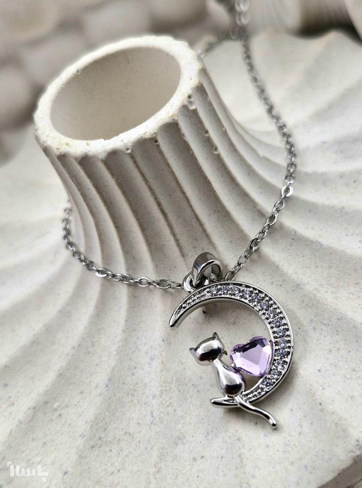 گردنبند پینترستی ماه و پیشی استیل
