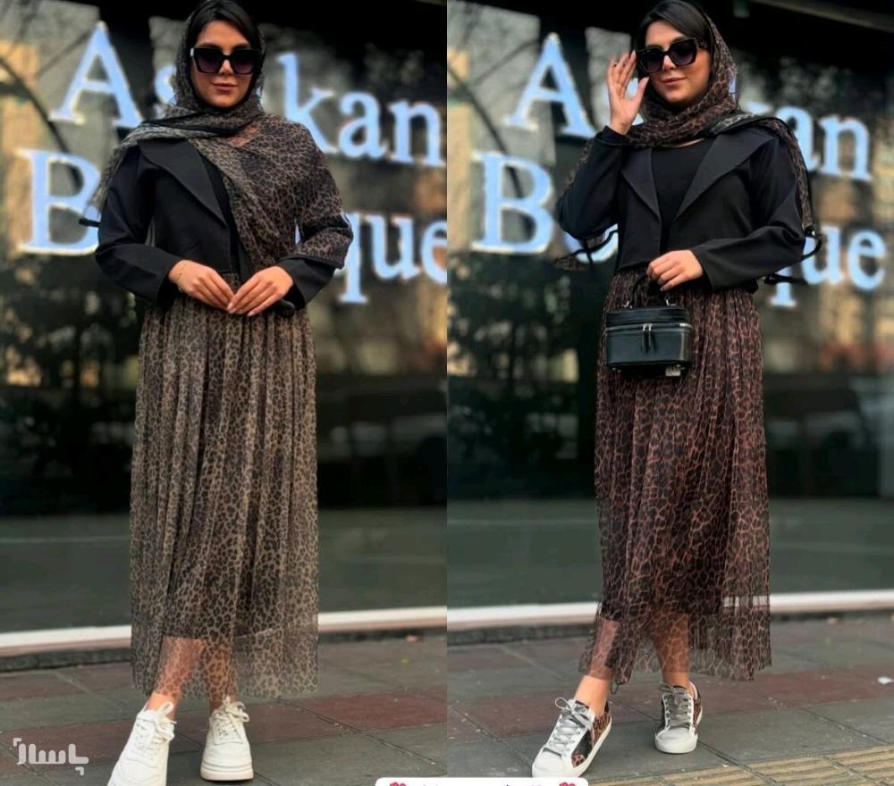 تاپ و دامن زنانه پرشیا مدل سه تیکه مجلسی کت و شال و دامن پلنگی