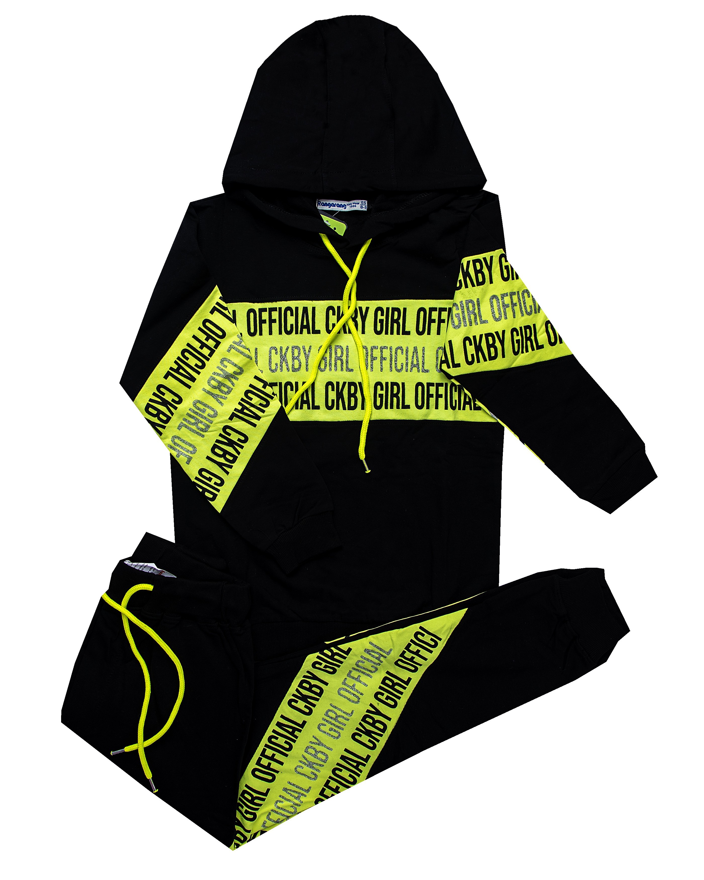 هودی شلوار دخترانه پنبه دورس مشکی فسفری اکلیل نقره ایسایز55،60درpikmod