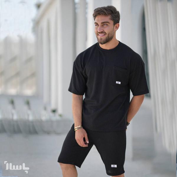 ست تیشرت و شلوارک بیسکویتی مردانه رنگ مشکی