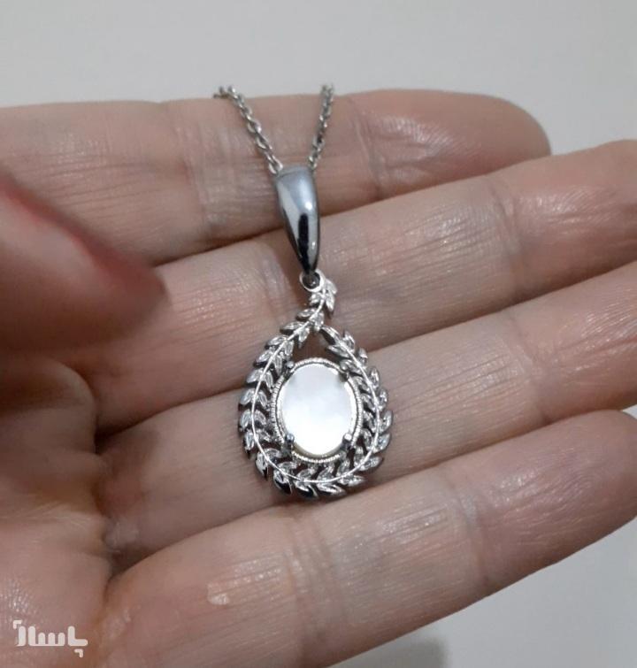 آویز زنانه گندمی نگین صدف اصل قاب آبکاری نقره می باشد کاری پر برکت وزیبا چون گندم نمادی از برکت است