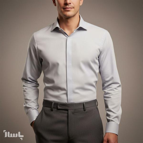 پیراهن مردانه ساده آستین بلند رنگ طوسی روشن – استایل شیک و رسمی