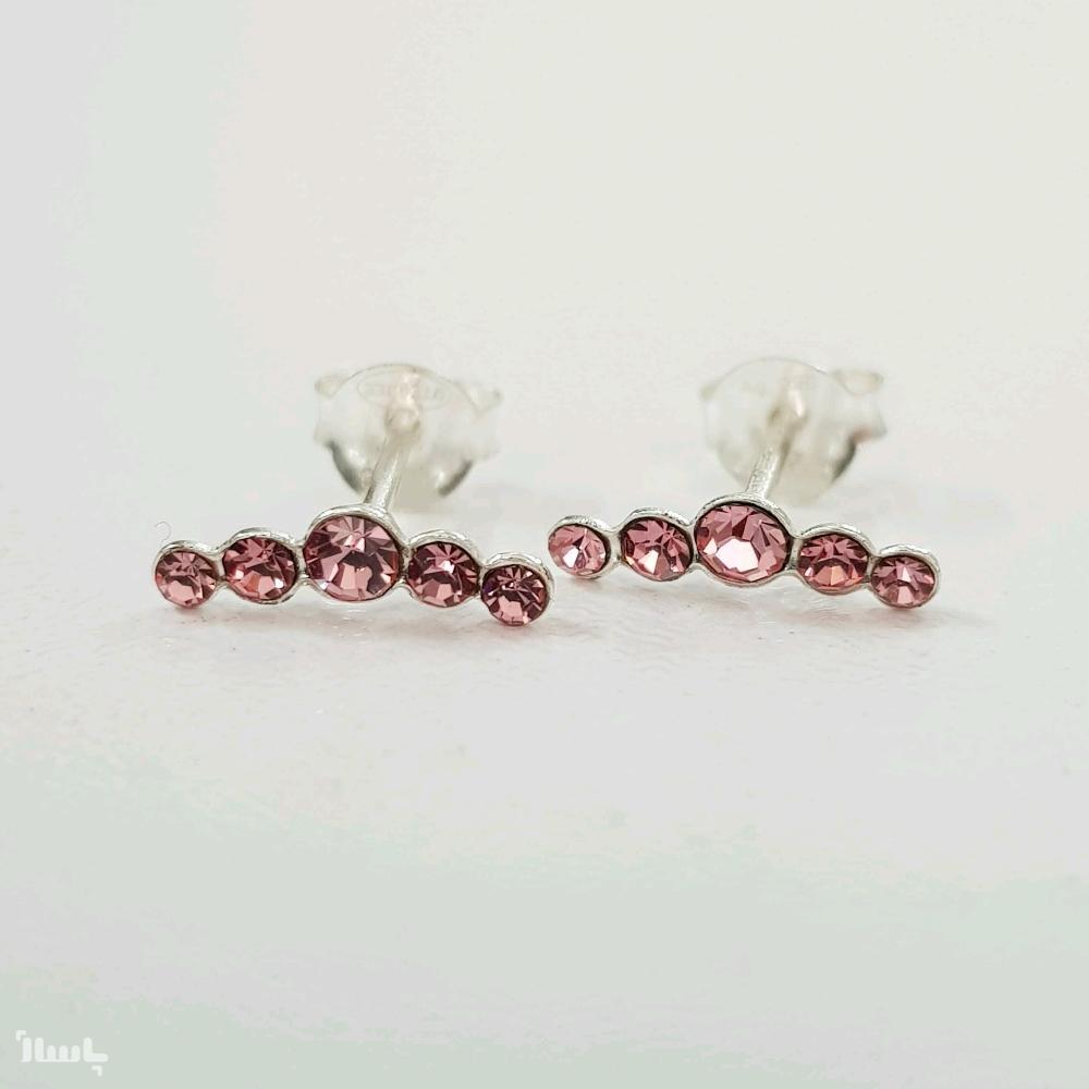 گوشواره گلگوش نقره نگین صورتی ، جنس نقره عیار 925