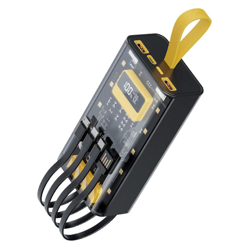پاوربانک شفاف پرو گرین لاین مدل Transparent Pro ظرفیت 20000 میلی آمپر با طراحی خلاقانه و شفاف به شما اجازه می دهد تا مدار و چیپ های داخل پاوربانک را ببینید. این پاوربانک دارای 7 خروجی و 2 ورودی است و وجود دو کابل یکپارچه متصل به بدنه شما را از حمل کابل شارژ اضافه بینیاز میکند. این محصول دارای دو پورت خروجی USB با توان 20 وات و یک پورت Type-C با توان 20 وات است و از قابلیت شارژ سریع QC و PD پشتیبانی میکند. جنس بدنه این پاوربانک از مواد درجه یک پلاستیک PC و ABS ساخته شده که بسیار مقاوم و ضد ضربه بوده و یک نشانگر LED بر روی بدنه قرار گرفته تا میزان درصد شارژ باتری را نشان دهد. پاوربانک 20000 میلی آمپر ساعتی گرین لاین مدل Transparent Pro از قابلیت شارژ ایمن پشتیبانی میکند و از دستگاهها در برابر افزایش دما، اضافه ولتاژ و اتصال کوتاه محافظت میکند. این محصول با تمامی دستگاهها سازگاری دارد و وزن آن در حدود 444 گرم است. اگر به دنبال یک منبع برق قوی با سرعت شارژ بالا برای مسافرت یا استفاده در فضای باز هستید قطعا پاوربانک 20000 میلی آمپر ساعتی گرین لاین مدل Transparent Pro گزینه جذابی برای شما به شمار میرود.