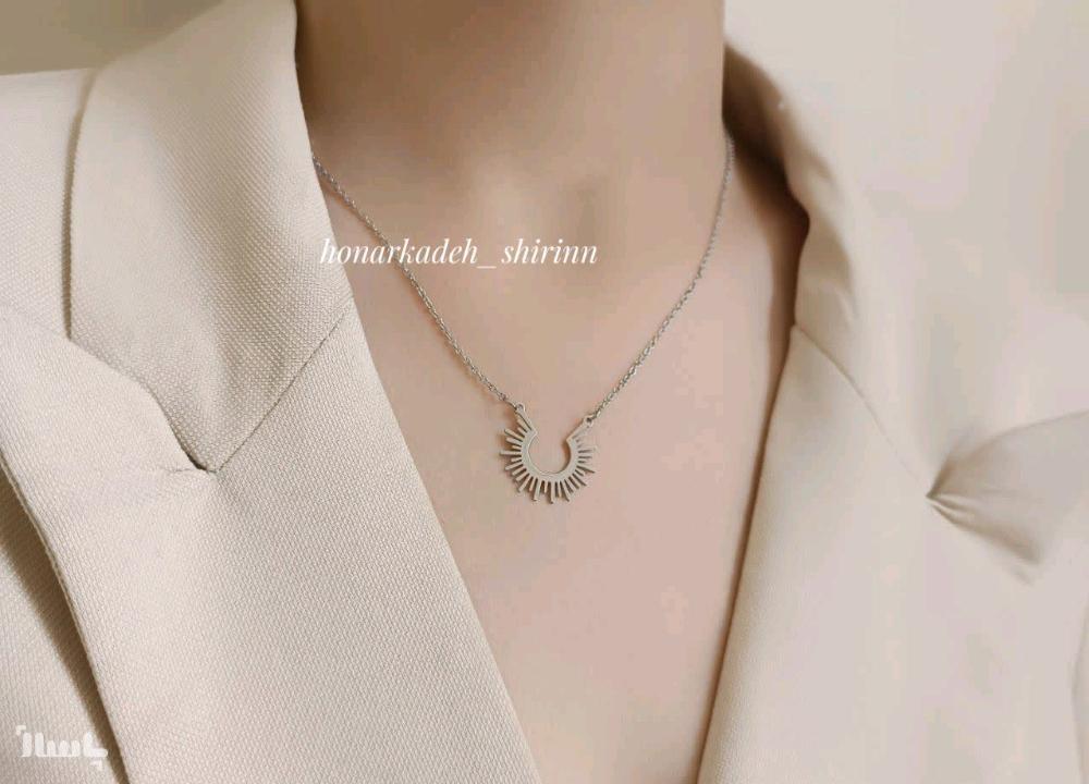 گردنبند استیل و رنگ ثابت نقره ای خورشید