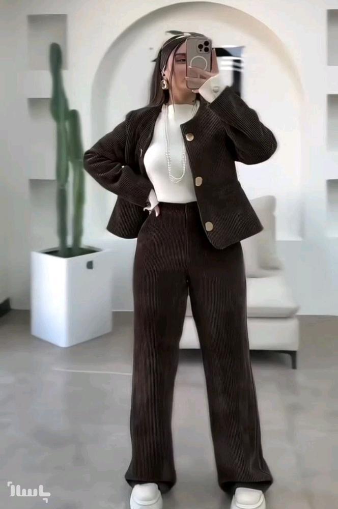 ست کت شلوار پاییزه زنانه مدل چاکلت جنس مخمل کبریتی درجه یک