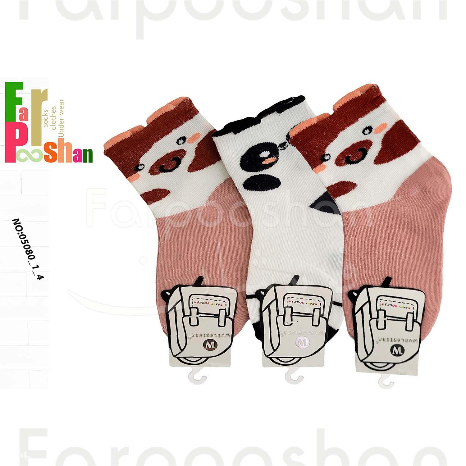 جوراب دخترانه مدل صورتک 4-1-05080 بسته 3 عددی