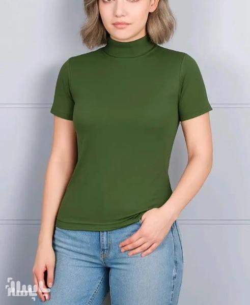تیشرت سبز دخترانه زنانه یقه 5 سانتی