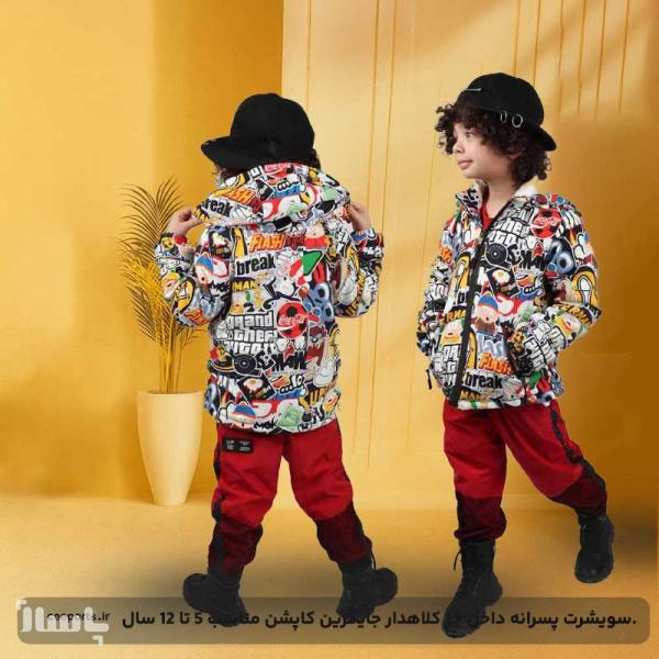 سویشرت پسرانه داخل خز کلاهدار جایگزین کاپشن مناسب 3 تا 10 سال.