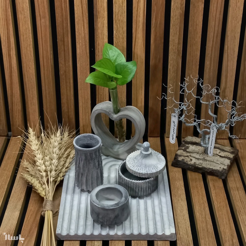 ست سنگی زیبابه همراه گلدان قابل سفارش در رنگهای دلخواه وتغییر سینی