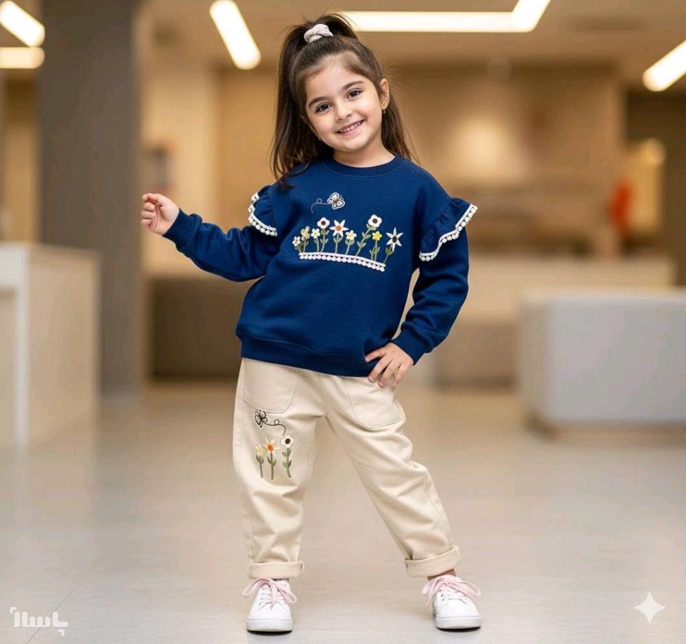 ست بچگانه بلوز و شلوار کتان دخترانه گل و پروانه