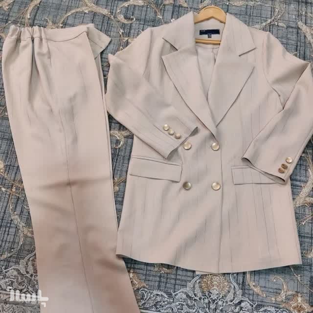 کت شلوار زنانه مدل نیلوفرمازراتی کرم راه راه طلایی دوسایز40تا48