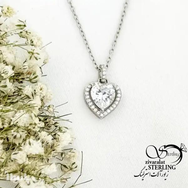 گردنبند قلب نقره جواهری فول نگین کد 19624
