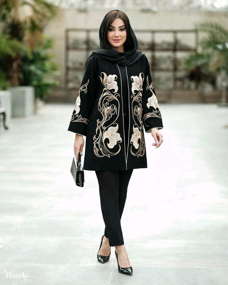 4 (50 - 52) دور سینه 120 ، قد مانتو 85 ، دور بازو 44 ، قد آستین از یقه 70 سانت