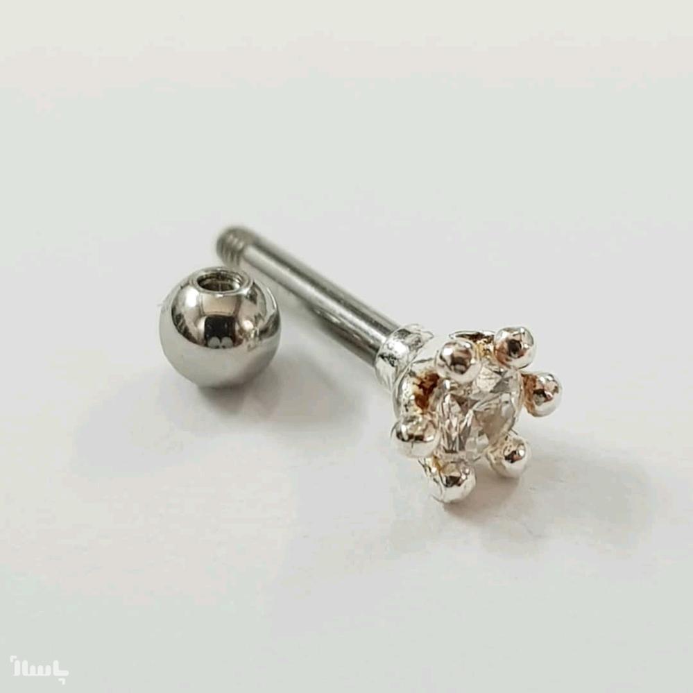 پیرسینگ گوش نقره عیار 925 نگین دار ، پیچی ، میله استیل ، بسیار زیبا ، ساخت کشور تایلند ، شناسنامه و بارکد دار ، عیار حک شده