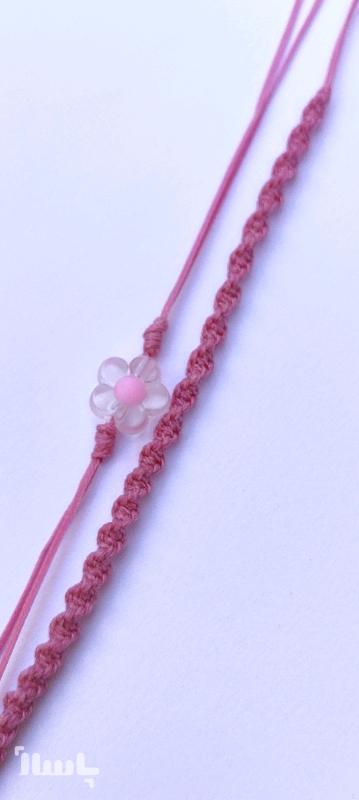 دستبند دولاین میکرومکرومه پیچی شکوفه گیلاس