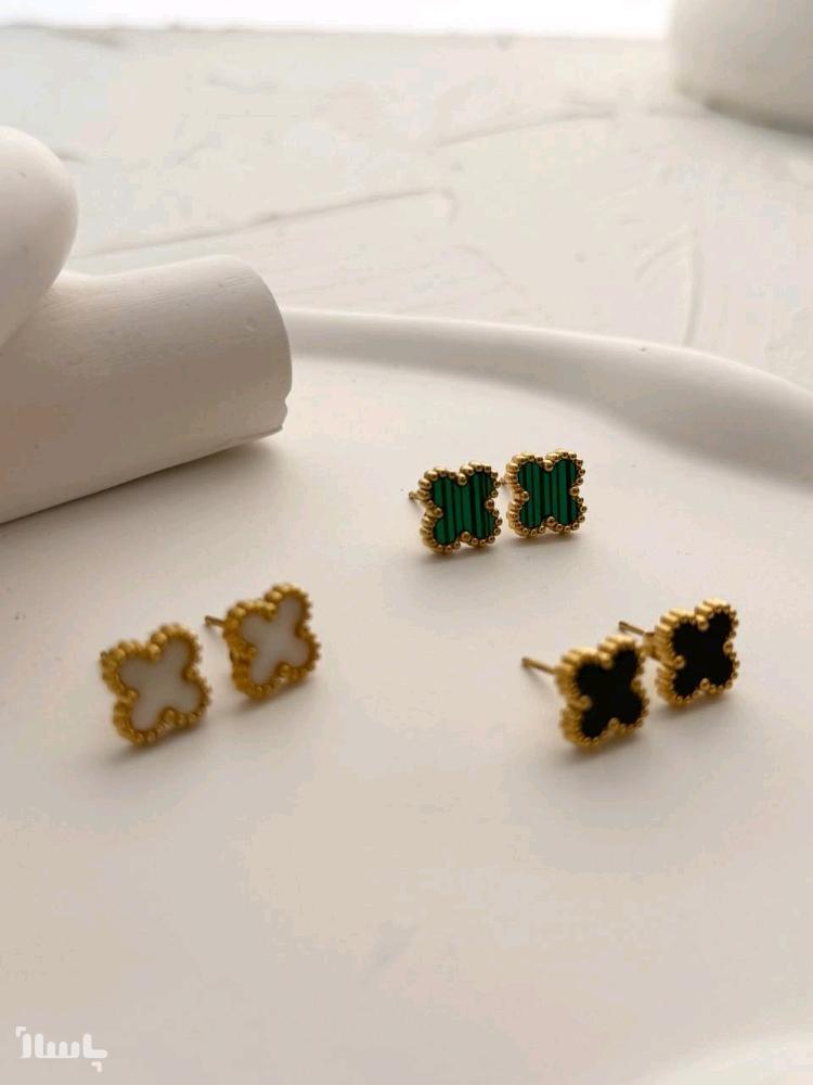 گوشواره میخی ونکلیف استیل، سفید، سبز، مشکی