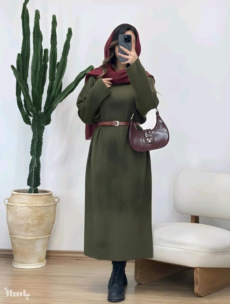 پیراهن مهمانی زنانه پشمی مدل کفتان بافت میله ای
