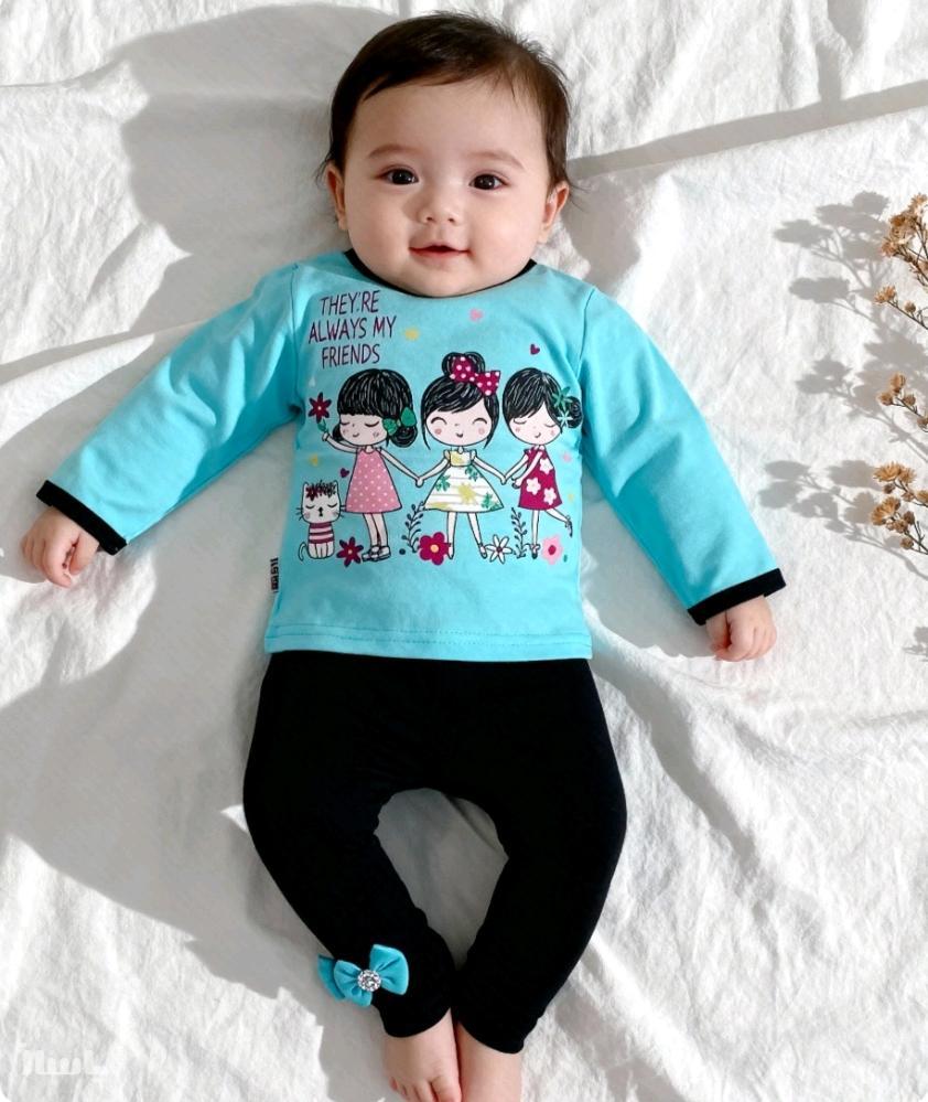 بلوزوشلوار لاکراپنبه دخترانه طرح عروسکی