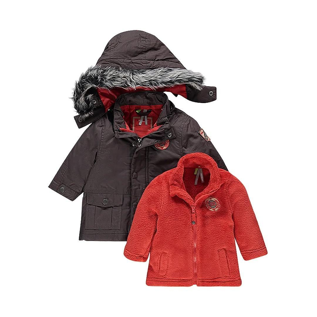 کاپشن خارجی: با کلاه گشاد و لبه پشمی مصنوعی برای حفاظت از سر و گوش نوزاد در روزهای سرد.